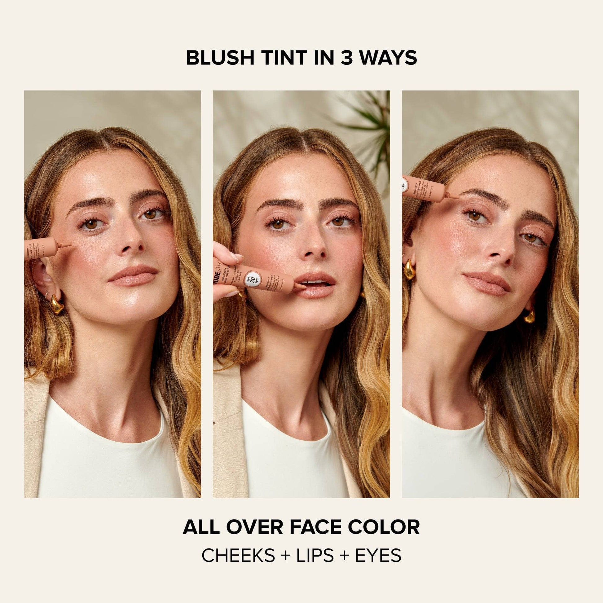 NUDESCREEN BLUSH TINT SPF 30 es un tinte de color suave y fresco para las mejillas, los ojos y los labios, que protege del daño diario de los rayos UV. Limpio, vegano, seguro para los arrecifes y sin filtros solares químicos, este colorete se presenta en una fórmula líquida que proporciona protección solar y es perfecto para llevar.
