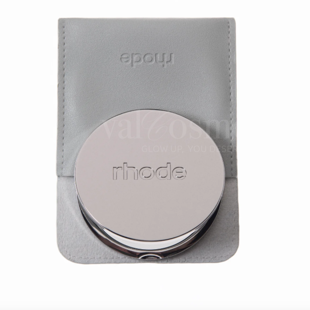 El espejo exclusivo de Rhode para llevar a todas partes. Lleva nuestro elegante espejo compacto de metal en tu bolso o neceser de maquillaje para retocarte los labios y el rubor en cualquier momento y lugar.