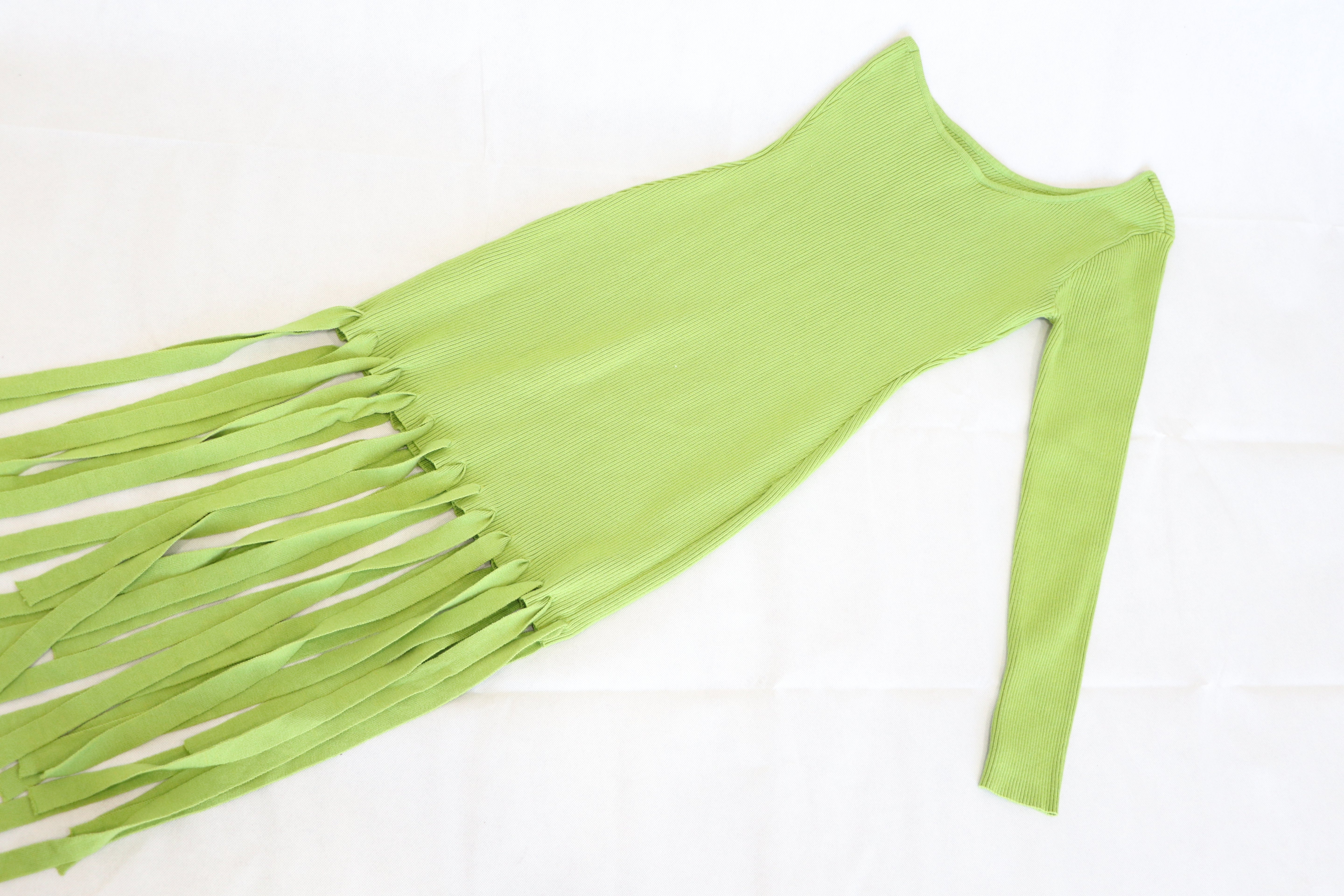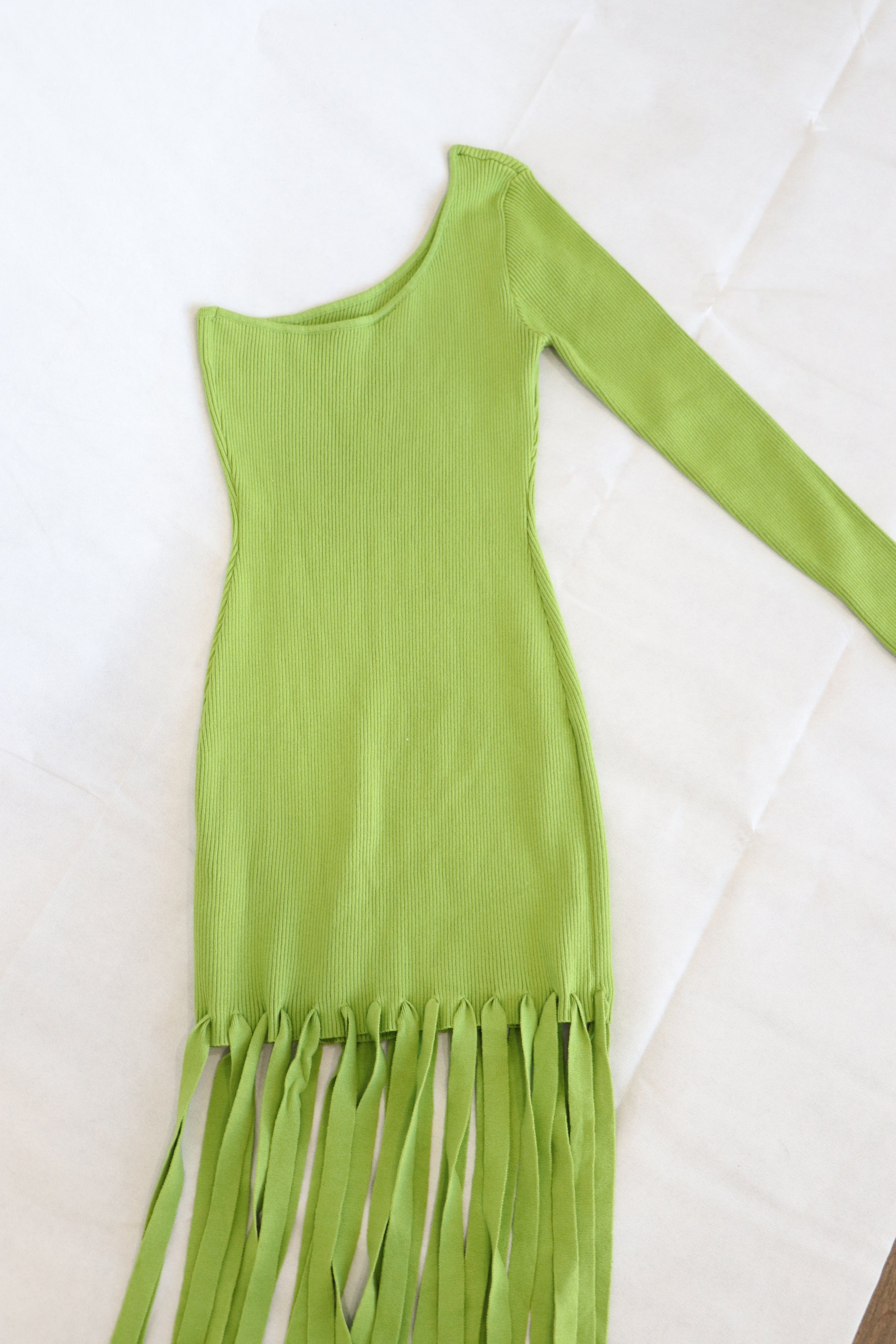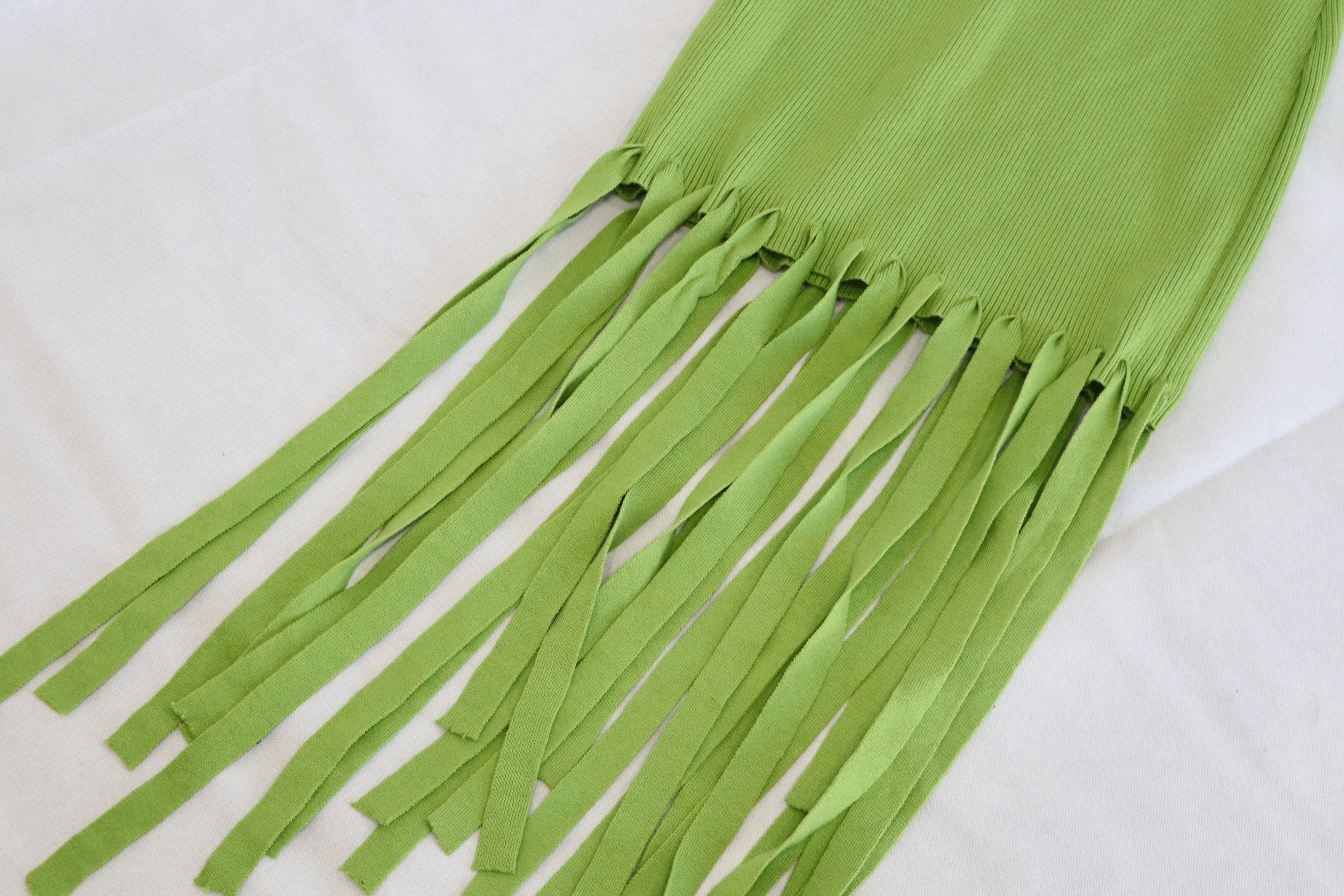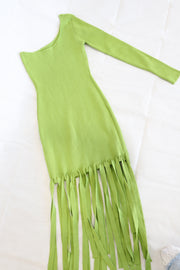 Vestido Verde asimetrico con flecos Talla M - Blanc Cloting