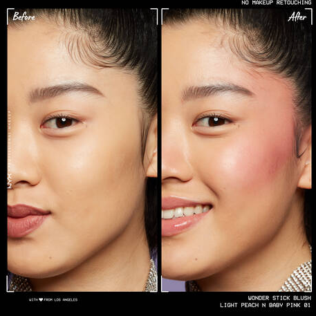 Presentamos el primer rubor en barra en crema de dos puntas que colorea, da forma y se difumina en dos sencillos pasos. Inspirado en nuestra icónica barra de contorno Wonder Stick, este rubor en crema de doble cara se funde en la piel como una maravilla, brindando color para una apariencia impecablemente sonrojada. ¡Dale vida a tu cutis como una maravilla con tres tonos iluminados formulados con ácido hialurónico! Primero, aplica el tono oscuro donde normalmente darías forma al contorno, luego aplica el tono claro en la parte superior de tus pómulos para agregar color. Difumina hacia arriba, hacia la sien, para resaltar el color de un brillo sonrojado sin esfuerzo. Ya sea que busques un maquillaje suave o un brillo glamoroso súper definido, cuando usas Wonder Stick Blush, ¡la maravilla está en tus manos!