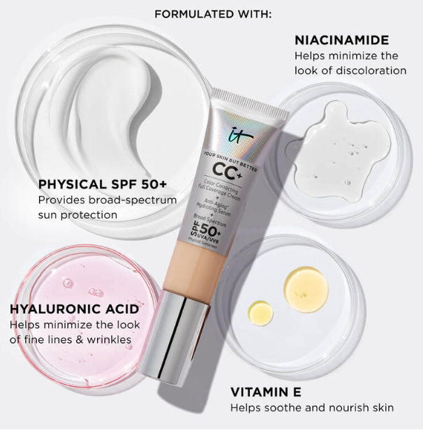 Con una infusión de ingredientes que cuidan la piel como ácido hialurónico, niacinamida y vitamina E, la crema CC proporciona hidratación mientras camufla instantáneamente el aspecto de las imperfecciones de la piel como cicatrices de acné, arrugas, enrojecimiento de la piel, ojeras, poros dilatados y un tono de piel desigual para una piel perfecta. -¡luciendo una cobertura natural!